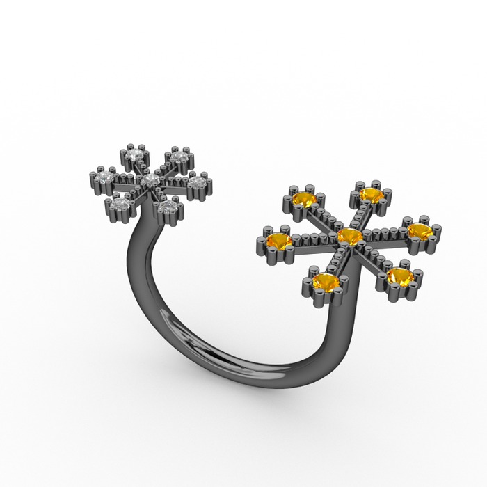 Sitrin ve beyaz zirkon 925 ayar siyah rodyum kaplama gümüş yüzük
