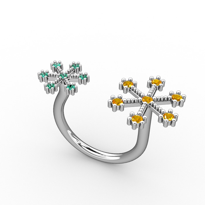 Sitrin ve yeşil kuvars 14 ayar beyaz altın yüzük