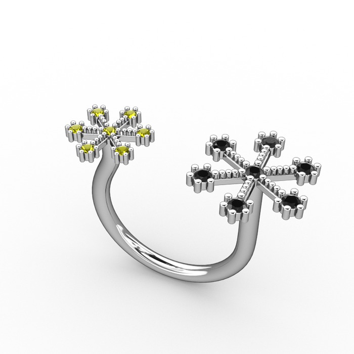 Siyah zirkon ve peridot 925 ayar gümüş yüzük