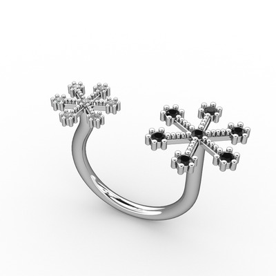 Siyah zirkon ve swarovski 14 ayar beyaz altın yüzük