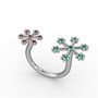 Yeşil kuvars ve garnet 8 ayar beyaz altın yüzük