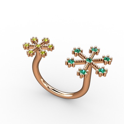 Yeşil kuvars ve peridot 925 ayar rose altın kaplama gümüş yüzük