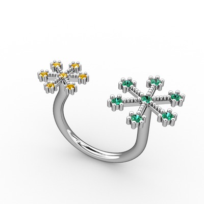 Yeşil kuvars ve sitrin 14 ayar beyaz altın yüzük