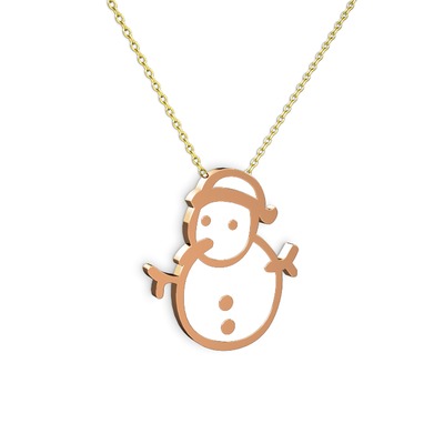 Kardan Adam Kolye - 18 ayar rose altın kolye (Beyaz mineli, 40 cm altın rolo zincir)