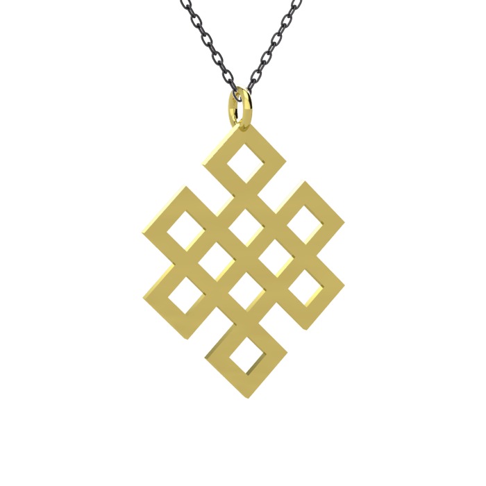 Budizm de ki en önemli sembollerden biri olan Shrivatsa’dan (sonsuz düğüm) ilham alınarak tasarlanan kolyemiz ile sonsuz bilgeliğinizi ve bütünlüğünüzü etrafınıza yansıtın. Shrivatsa sembolu 90 derecelik açılarlar ile iç içe geçen çizgilerden oluşmuştur. Hiç bir çizginin bir başlangıcı ve bitişi bulunmamaktadır. Bu formu sayesinde sonsuzluğu simgelemekyedir. Bu Sonsuz düğüm sembolu aynı zamanda kaderimizi karma ile birleştirmenin semboludur o yüzden bir diğer adı da Karma Sembolüdür. Detaylı Bilgi