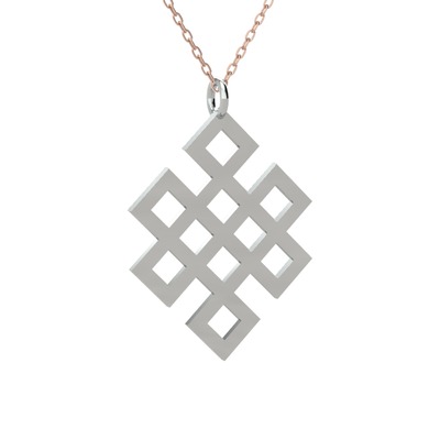 Budizm de ki en önemli sembollerden biri olan Shrivatsa’dan (sonsuz düğüm) ilham alınarak tasarlanan kolyemiz ile sonsuz bilgeliğinizi ve bütünlüğünüzü etrafınıza yansıtın. Shrivatsa sembolu 90 derecelik açılarlar ile iç içe geçen çizgilerden oluşmuştur. Hiç bir çizginin bir başlangıcı ve bitişi bulunmamaktadır. Bu formu sayesinde sonsuzluğu simgelemekyedir. Bu Sonsuz düğüm sembolu aynı zamanda kaderimizi karma ile birleştirmenin semboludur o yüzden bir diğer adı da Karma Sembolüdür. Detaylı Bilgi