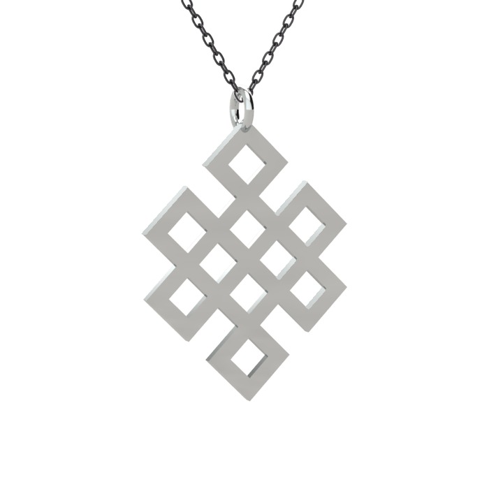 Budizm de ki en önemli sembollerden biri olan Shrivatsa’dan (sonsuz düğüm) ilham alınarak tasarlanan kolyemiz ile sonsuz bilgeliğinizi ve bütünlüğünüzü etrafınıza yansıtın. Shrivatsa sembolu 90 derecelik açılarlar ile iç içe geçen çizgilerden oluşmuştur. Hiç bir çizginin bir başlangıcı ve bitişi bulunmamaktadır. Bu formu sayesinde sonsuzluğu simgelemekyedir. Bu Sonsuz düğüm sembolu aynı zamanda kaderimizi karma ile birleştirmenin semboludur o yüzden bir diğer adı da Karma Sembolüdür. Detaylı Bilgi