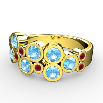 Akuamarin ve kök yakut 14 ayar altın yüzük
