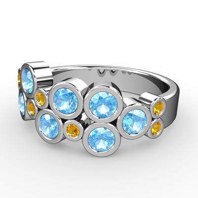 Akuamarin ve sitrin 18 ayar beyaz altın yüzük