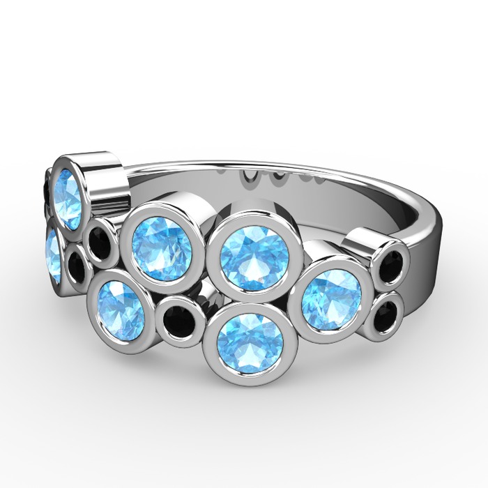 Akuamarin ve siyah zirkon 925 ayar gümüş yüzük