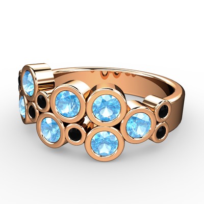 Akuamarin ve siyah zirkon 925 ayar rose altın kaplama gümüş yüzük