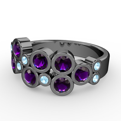 Ametist ve akuamarin 925 ayar siyah rodyum kaplama gümüş yüzük