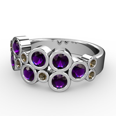 Ametist ve dumanlı kuvars 14 ayar beyaz altın yüzük
