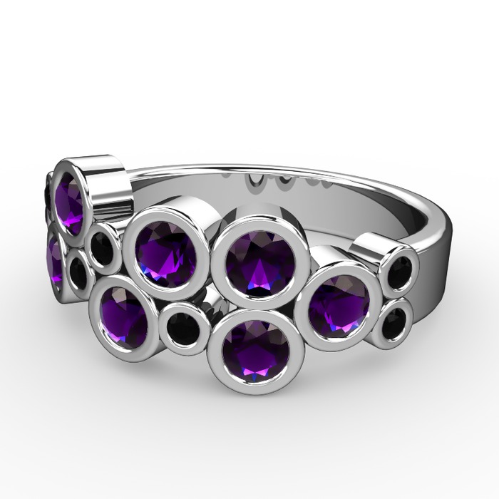 Ametist ve siyah zirkon 8 ayar beyaz altın yüzük