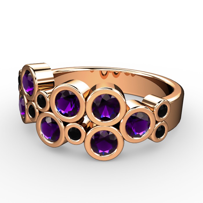 Ametist ve siyah zirkon 8 ayar rose altın yüzük