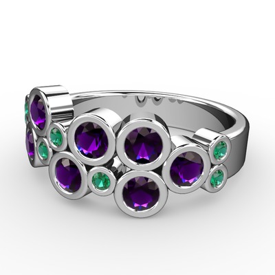 Ametist ve yeşil kuvars 14 ayar beyaz altın yüzük