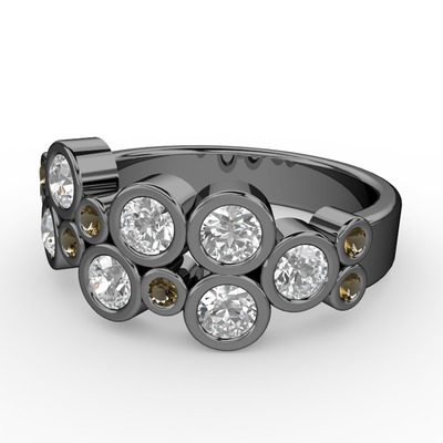 Beyaz zirkon ve dumanlı kuvars 925 ayar siyah rodyum kaplama gümüş yüzük