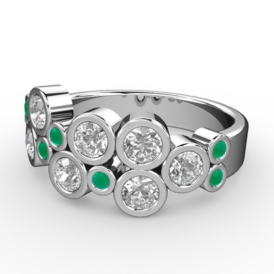 Beyaz zirkon ve kök zümrüt 925 ayar gümüş yüzük