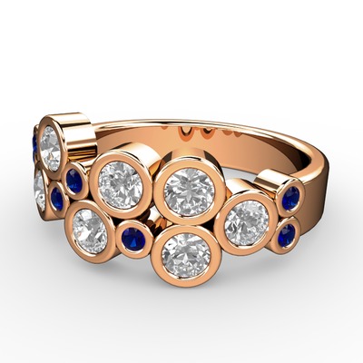 Beyaz zirkon ve lab safir 8 ayar rose altın yüzük