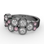Beyaz zirkon ve pembe kuvars 925 ayar siyah rodyum kaplama gümüş yüzük