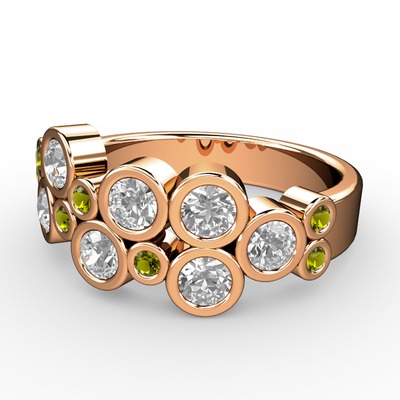 Beyaz zirkon ve peridot 8 ayar rose altın yüzük