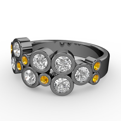 Beyaz zirkon ve sitrin 925 ayar siyah rodyum kaplama gümüş yüzük