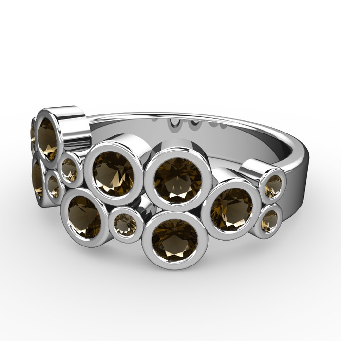 Dumanlı kuvars 14 ayar beyaz altın yüzük