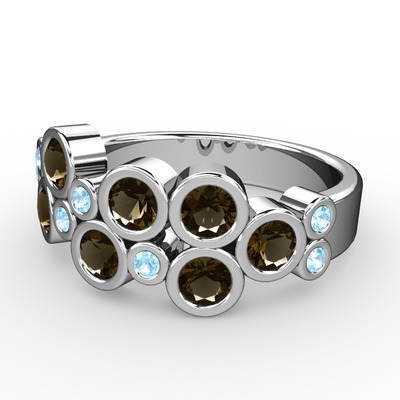 Dumanlı kuvars ve akuamarin 18 ayar beyaz altın yüzük