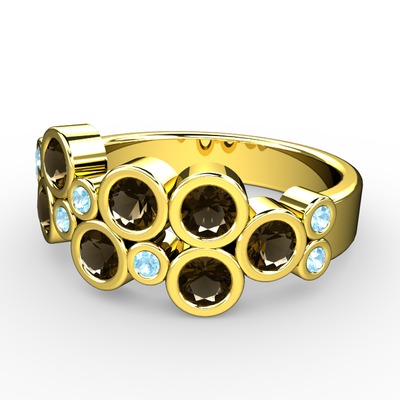 Dumanlı kuvars ve akuamarin 8 ayar altın yüzük