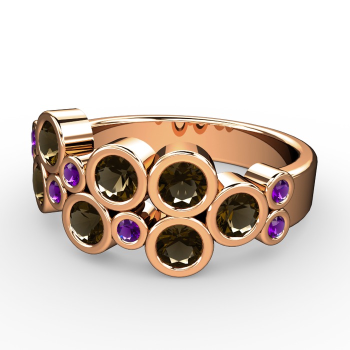 Dumanlı kuvars ve ametist 925 ayar rose altın kaplama gümüş yüzük