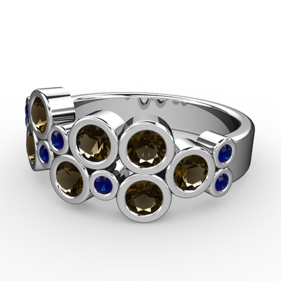 Dumanlı kuvars ve lab safir 18 ayar beyaz altın yüzük