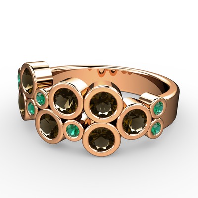 Dumanlı kuvars ve yeşil kuvars 14 ayar rose altın yüzük