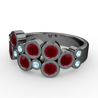 Kök yakut ve akuamarin 925 ayar siyah rodyum kaplama gümüş yüzük