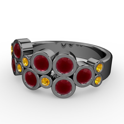 Kök yakut ve sitrin 925 ayar siyah rodyum kaplama gümüş yüzük