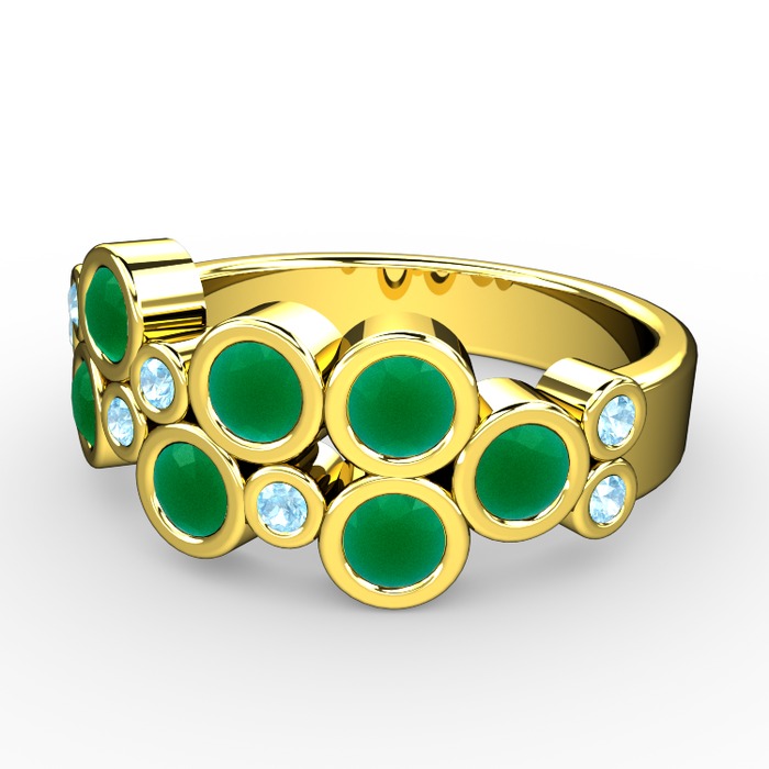 Kök zümrüt ve akuamarin 14 ayar altın yüzük