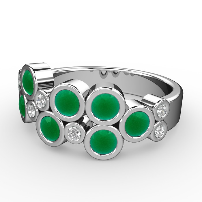Kök zümrüt ve beyaz zirkon 14 ayar beyaz altın yüzük
