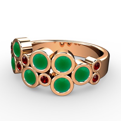 Kök zümrüt ve garnet 925 ayar rose altın kaplama gümüş yüzük