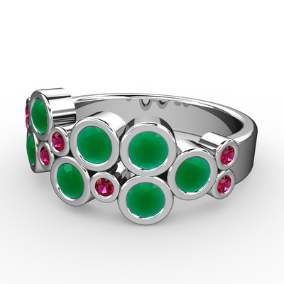 Kök zümrüt ve rodolit garnet 14 ayar beyaz altın yüzük