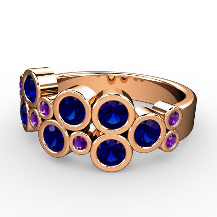 Lab safir ve ametist 14 ayar rose altın yüzük