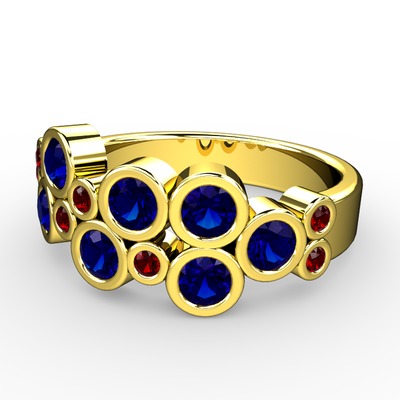 Lab safir ve garnet 925 ayar altın kaplama gümüş yüzük