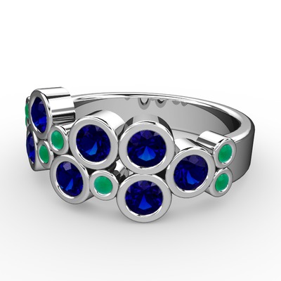 Lab safir ve kök zümrüt 14 ayar beyaz altın yüzük