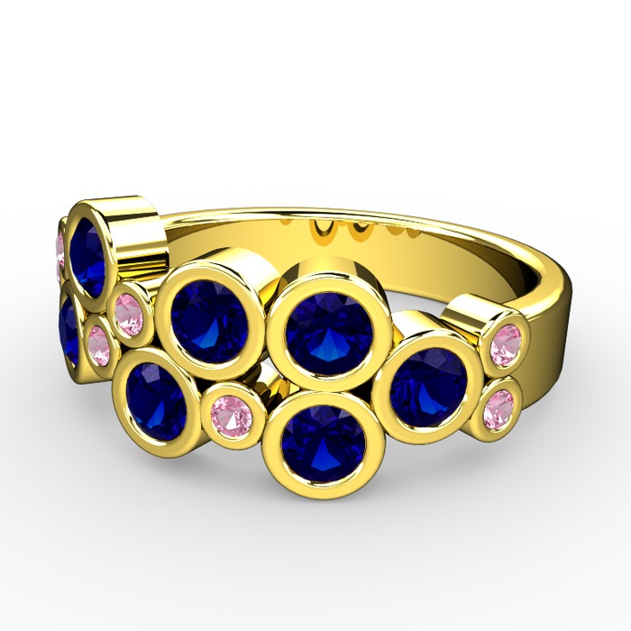 Lab safir ve pembe kuvars 8 ayar altın yüzük