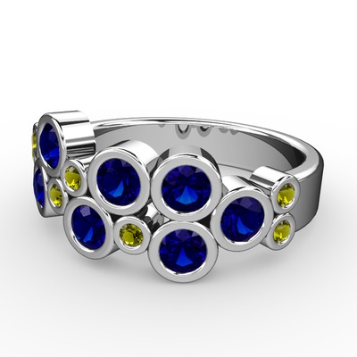 Lab safir ve peridot 18 ayar beyaz altın yüzük