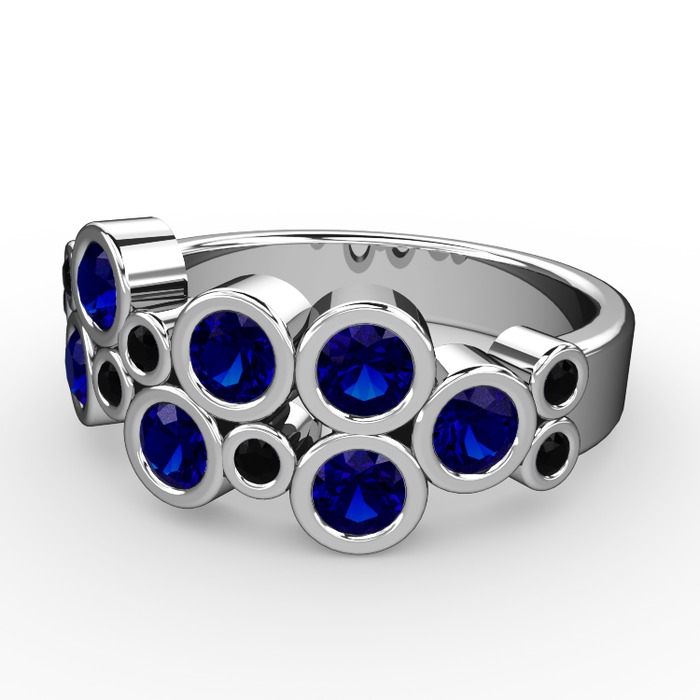 Lab safir ve siyah zirkon 925 ayar gümüş yüzük