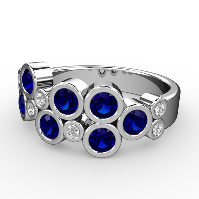Lab safir ve swarovski 8 ayar beyaz altın yüzük