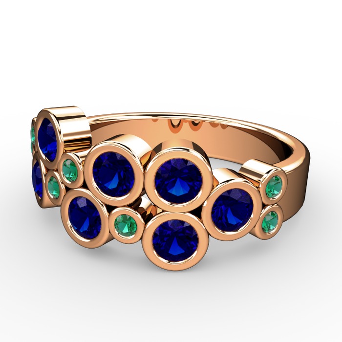 Lab safir ve yeşil kuvars 18 ayar rose altın yüzük