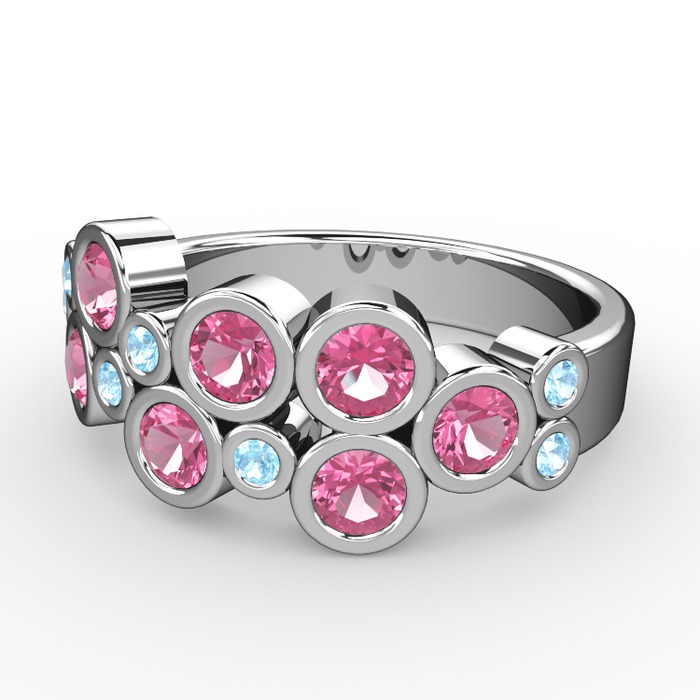 Pembe kuvars ve akuamarin 925 ayar gümüş yüzük