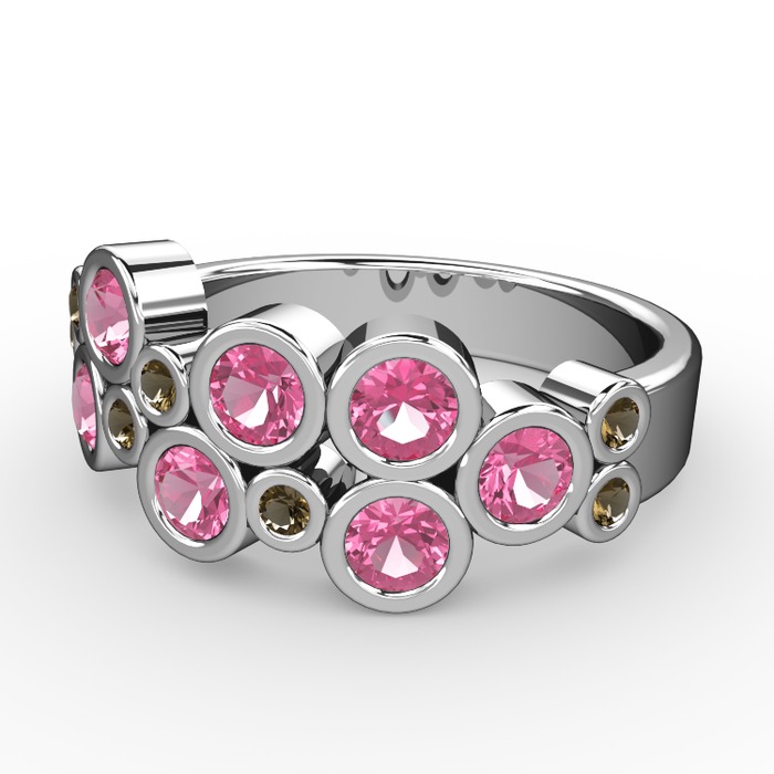 Pembe kuvars ve dumanlı kuvars 18 ayar beyaz altın yüzük