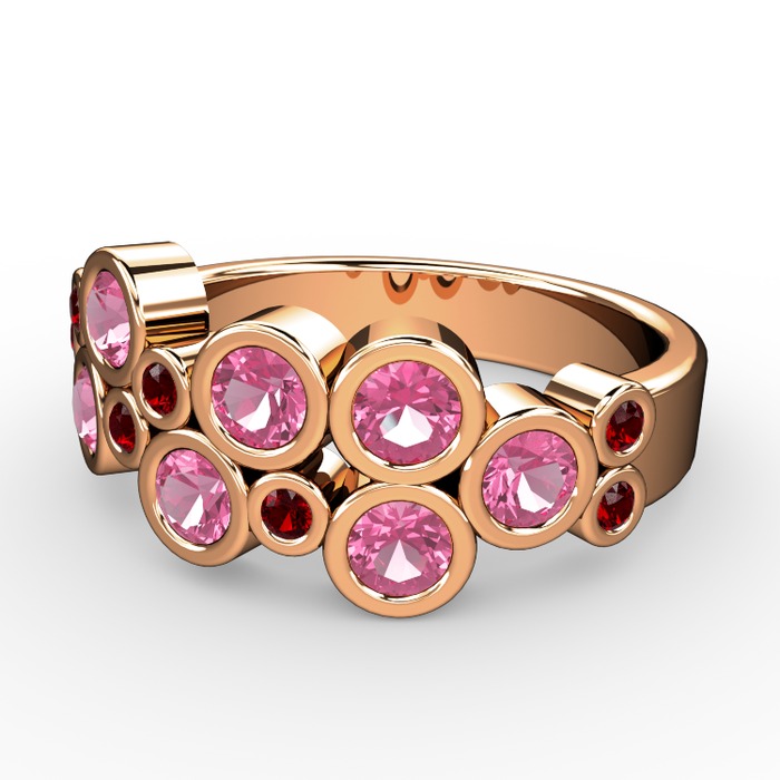 Pembe kuvars ve garnet 925 ayar rose altın kaplama gümüş yüzük