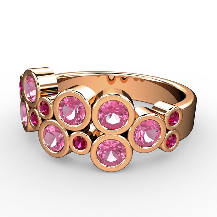 Pembe kuvars ve rodolit garnet 18 ayar rose altın yüzük